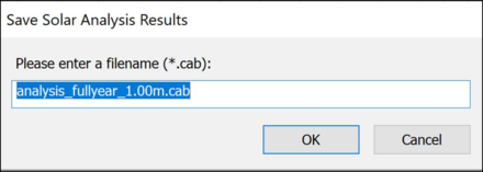 By default, the file name notes whether it was a solar exposure or solar energy analysis, the period of the simulation and the size of the grid if a grid is selected.
