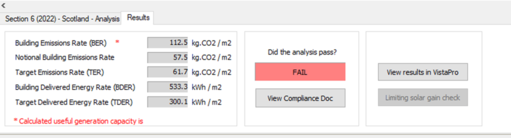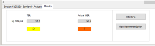 In some cases, where no direct fossil fuel is in use, there is no value required for TER. In this case the TER displays a dash. The pass or fail will not include TER in this case as the test logic in this case will only use TDER.
