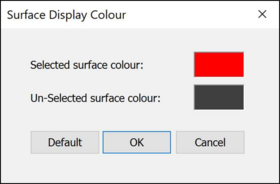 The Set Surface Display Colour button will open the window below where colours can be chosen to display selected and un-selected surfaces. The default colours are red and black respectively.