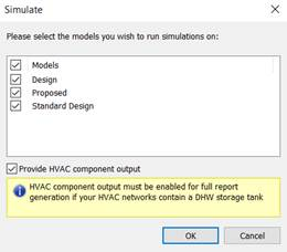 Note that for the official compliance report to generate, HVAC component output will have to be turned on. This is not required for the results summary report.