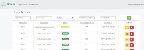 Once uploaded the Indalo dashboard should be used to monitor simulation progress. Refresh the dashboard page to re-poll status: