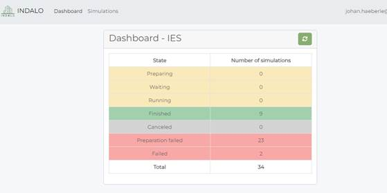 Une fois téléchargé, le tableau de bord Indalo doit être utilisé pour surveiller la progression de la simulation. Actualisez la page du tableau de bord pour réinterroger l'état :