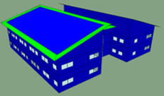 Another common issue is where the gbXML is poorly defined for roof levels. When imported into the VE an additional ‘shade surface’ has been added to the model where it is not required. This can occur where there are pitched or flat roofs. (See image below) The impact of this is incorrect results from analysis performed as this shade surface is altering where the external boundary begins and is also blocking sunlight that would normally be received by the roof surface.