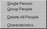 Menu Items: Single Person, Group People, Delete All People, Characteristics