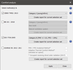 The Comfort analysis dialog will appear where the user should then select the BB101:2018 option.