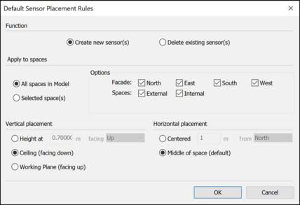 Click OK, and the sensor placement dialogue box will open to allow the creation, editing or deletion of sensors: