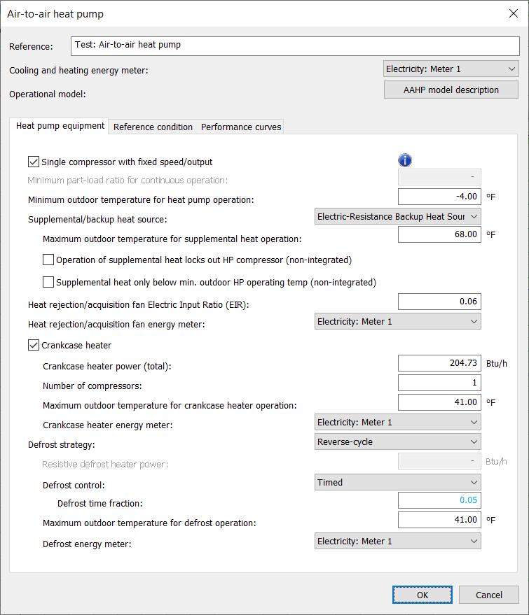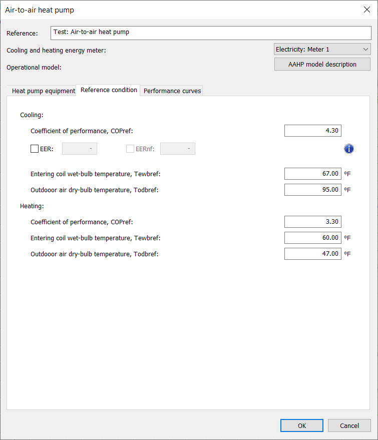 Figure 45: Air-to-air heat pump dialog, Reference condition tab