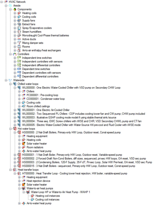 Figure 1 - 13 : Component browser tree with HVAC network components and controllers.