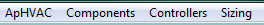These pull-down menus provide functions specific to the ApacheHVAC view.