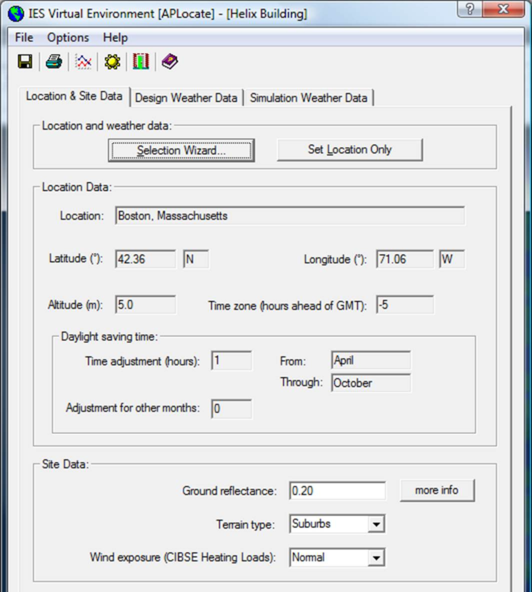 This button activates the APlocate application which allows you to edit data related to the site location of the model.