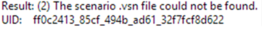 A: The scenarios are stored as .VSN files within the Scenarios directory of the project folder – if the relevant file for a scenario is missing or corrupted, an error will be displayed when you try to select the scenario from the Scenarios dropdown: