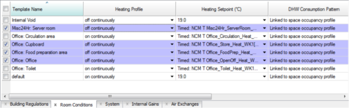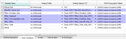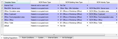 If you attempt to modify the value of NCM Activity Type for template Office: Cupboard to “NCM Office: Office (Office Common)”, the change will only be applied to the templates Office Cupboard, Office: Food preparation area and Office: Office. It would not be applied to Misc24Hr; Server room because that template is not using “B1: Office or Workshop (Office)” for its NCM Building Area Type. Similarly, the change would not be applied to Internal Void either – this is because that template has no NCM Building Area Type set.