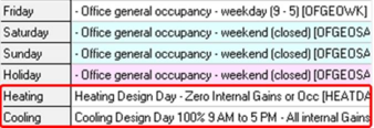 In ApachePro, two new day types have been added to allow for the definition of specific heating and cooling design day profiles.