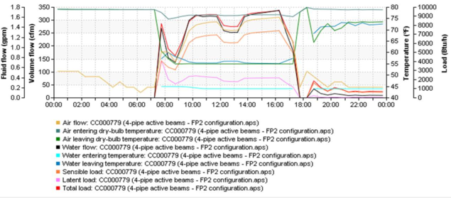 Figure 1 - 19 : Detailed component-level results can be analyzed over the course of a day to understand the influence and interactions of water- and air-side system configuration and control options.