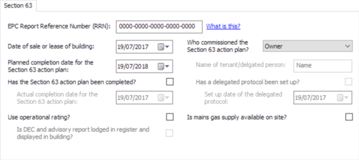 The values provided for these fields will feed into the resulting action plan, so you must set them up appropriately in order to complete a valid Section 63 assessment. The various settings are as follows: