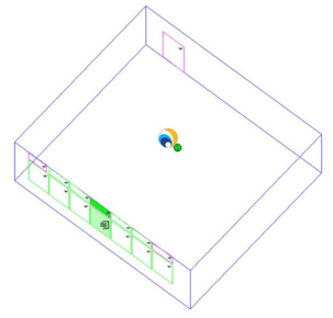 - The room must have one HTM Integrated Louvre for each HTM unit in a room. For example, if an HTM unit group defines the Number Of Units property as 2, the room must have two HTM Integrated Louvres. All HTM louvres are modelled using external doors.
