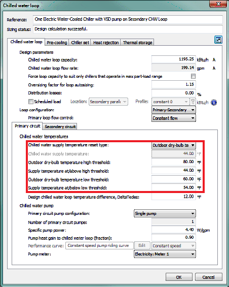 Figure 10: Default chilled water loop supply water temperature control settings for a PRM Baseline System 7