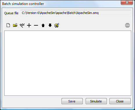 Starts the batch simulation queue with ApacheSim processing the listed models.