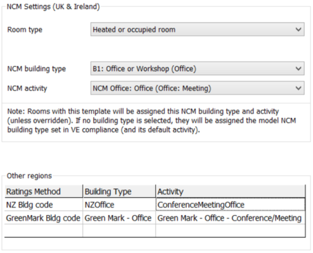 This tab allows the template to be associated with an NCM activity template for UK Building Regulations compliance. Data entered here will only affect VE Compliance and other thermal modules (ApacheCalc, ApacheSim) will remain unchanged.
