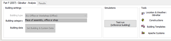 The reference Building settings are predetermined by selection within the Actual building.
