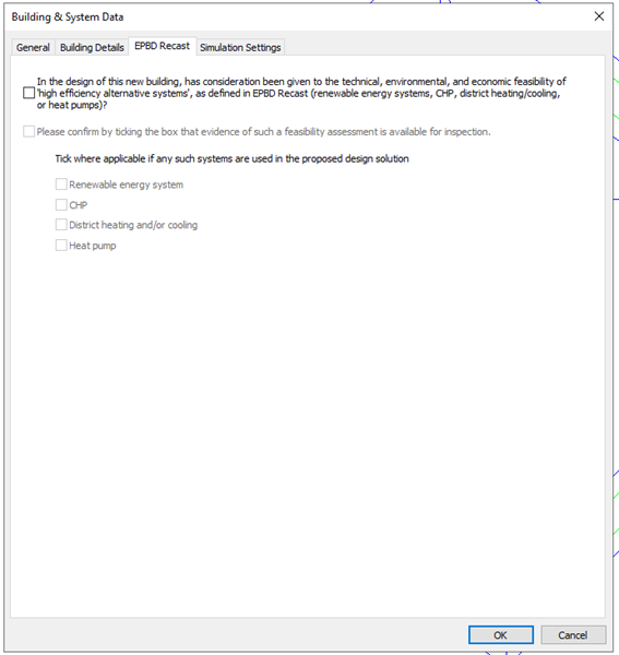 Building & System Data > EPBD Recast tab and its user defined inputs. This tab is consistent with other UK and Ireland compliance routes, and factors a review between the latest iSBEM (England, Scotland and Wales) and iSBEMgi (Gibraltar equivalent).