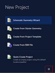 - On Double-click: When selected, the next section group within the accordions will be auto-expanded when you double-click an option in the current group. This only applies to the Starter Geometry, Project Template and Location & Weather nodes – it will not have any effect on the Schematic Geometry Wizard and BIM Options nodes, as these require multiple options to be selected.