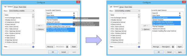For example, the following images show the result of moving the Floor Area, Floor Lettable Area and Floor Circulation Area columns to the position of the General Template column:
