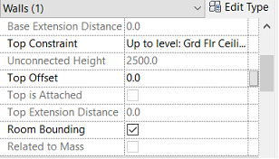 Image from Autodesk Revit: Properties dialogue – Room Bounding option