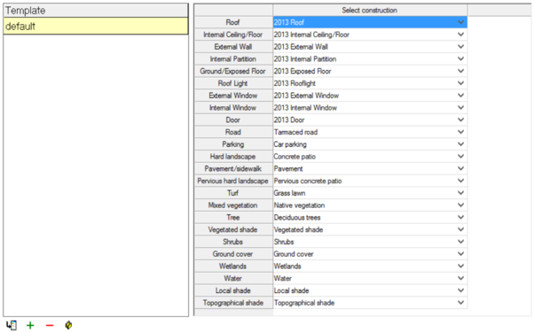 Note Construction Template is assigned to newly created geometry or may be assigned to a selected room but the assigned Constructions do not dynamically update if the template is edited after it has been assigned.