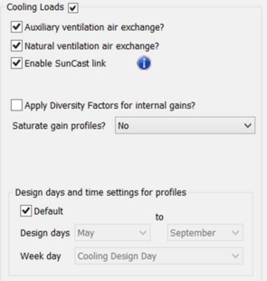 The Cooling Loads calculation is carried out for one design day per month. Indicate which day of the week is to be used to set the profiles used in Cooling Loads for casual gains, ventilation rates and (if appropriate) temperature boundary conditions.