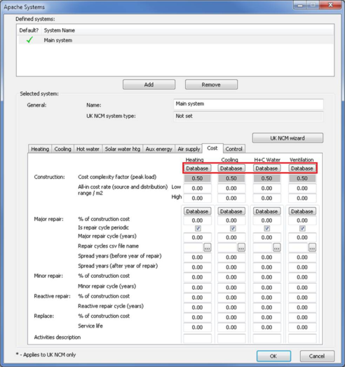 The cost database dialog is to be accessed from the following existing VE interfaces: Project constructions tabular edit dialog (section 3.3 ), Project material dialog for materials of floor finishes and suspended ceilings type (section 3.4 ), Apache system dialog (section 3.5 ), and Cost plan toolbar (section 0 ).