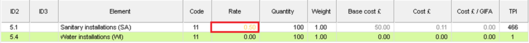 Select a construction. Then click on the Cost database button. Select any cost items with the desired quantity, then clicked the “Copy selection to project”. The total rates of the selected cost items will then be populated into the selected construction and displayed as orange text color. For example: