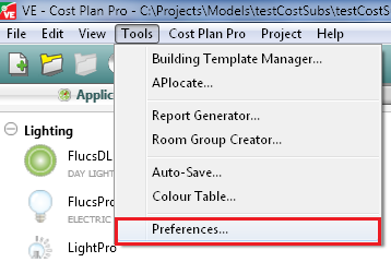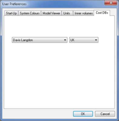 If users has subscribed to and installed cost data from multiple providers or countries, a default provider and a default country under this provider will be set on entering VE to determine which dataset to be used. To change the default settings, click on Tools -> Preferences ->Cost DB tab