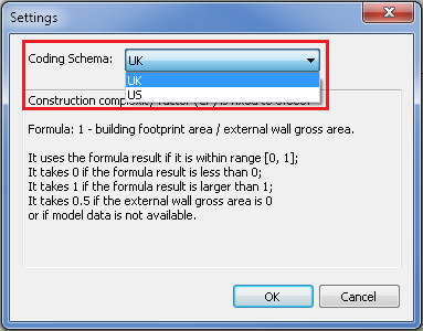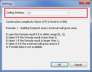 If the global Cost DB settings do NOT exist, default coding schema is used unless the users set themselves on the Settings dialog (note that the coding schema combo box now becomes selectable):