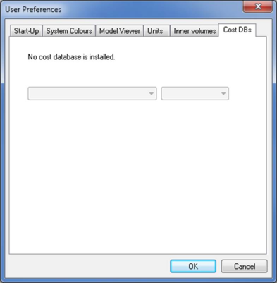 If the cost database is opened for an object that does not reference any database data, it will be displayed as follows: