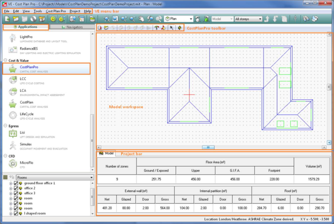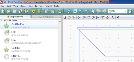 To launch the CostPlanPro module, choose CostPlanPro (Capital Cost Analysis) ) from the Applications tab in the main VE. You must have the appropriate license key to launch CostPlanPro.