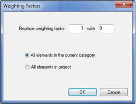 “Weighting factors”: This provides a mechanism to rapidly edit the weighting for all elements under the current category or for all elements in the project.