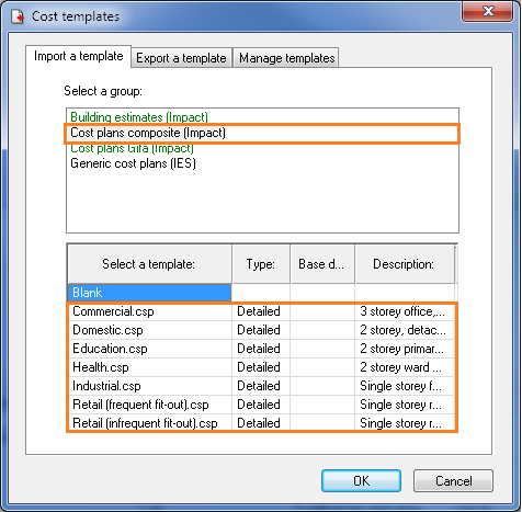 Within the navigator, the user can select “Import cost template” or “create cost plan from scratch” which will display a dialog with options of selecting the relevant cost plan.