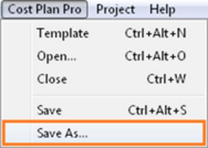 Save csp file to current location (Use CostPlanPro->Save As menu item to save to an alternate location or an alternative csp file).