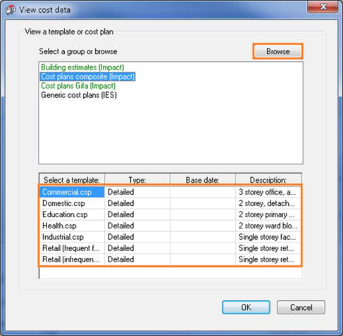 The user can either select a cost plan template, or click the “Browse” button to open any existing .csp file. Once the csp file has been selected, a modeless read-only dialog will display the selected cost plan file.