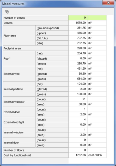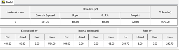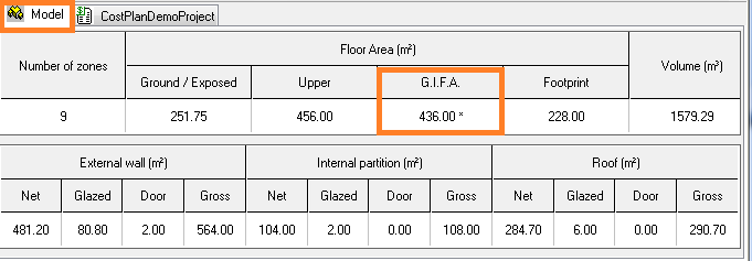 If the GIFA has been adjusted, a star sign will be added to the GIFA value on the Model tab.