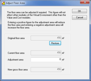 This provides a facility for the user to adjust the GIFA without redrawing the model. Inputting a positive number reduces the GIFA and inputting a negative number increase the GIFA.