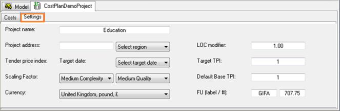 Base cost: This field is non-editable and displays the total construction cost prior to the application of the location factor, tender price index factor, and the overall project adjustment factor set by the scaling factor on the project settings tab.