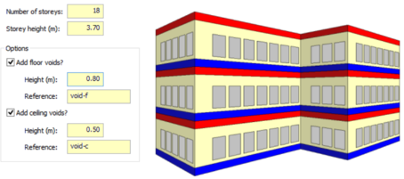 Step 3 - Set the number of storeys to be 18; set the storey height to be the new required height (if desired – by default this will be the existing space’s height); Add floor voids and/or ceiling voids if required.