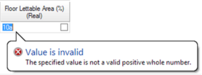 In basic value cells and “From Template” value cells, there is always the scope for the user to enter an incorrect value. This could be due to a typing error, or a range-check error (e.g. entering a negative value or a value greater than 100 for a percentage). In these cases, Tabular Space Data will display a balloon tip to warn you about the problem and will not apply the change.