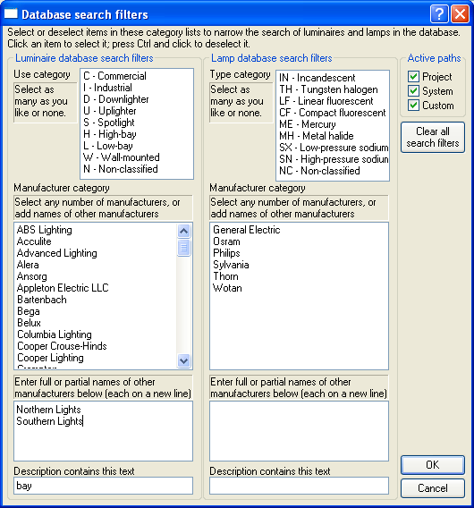 Select this option to include the system database path (the "lights" folder below the folder where the IES software is installed) in the filter.