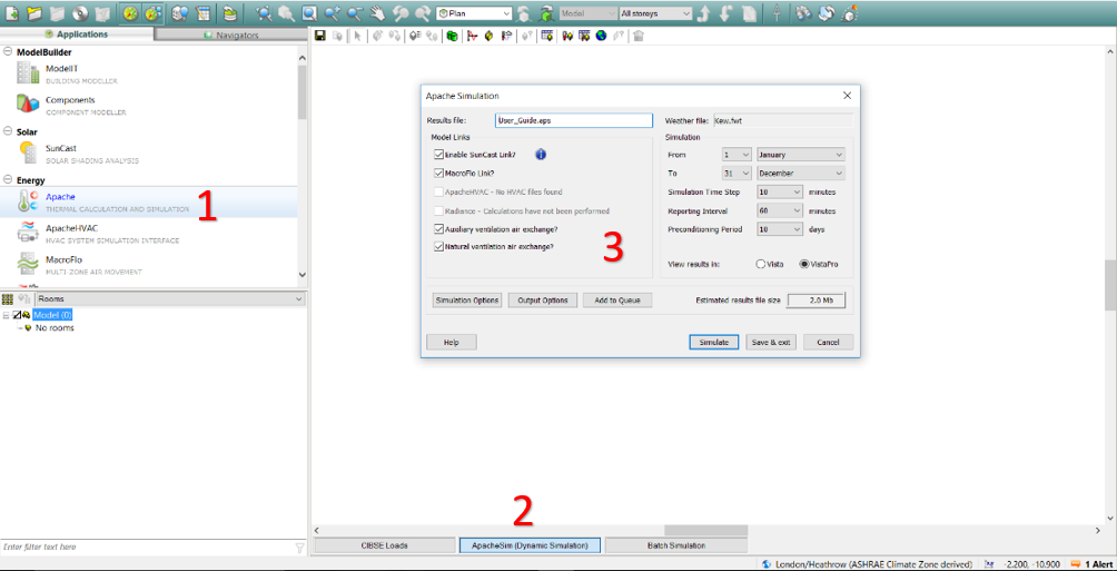 2. Click on “ApacheSim (Dynamic Simulation)” to load the simulation dialogue.