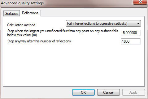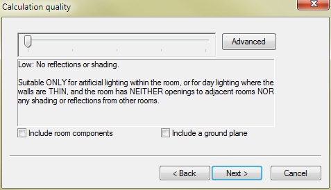 This will show the Advanced Quality Settings dialogue box, where you can set the calculation quality at a higher level of detail.