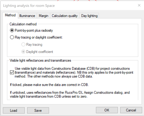 When the second option is selected then Ray tracing or Daylight coefficient can be specified.