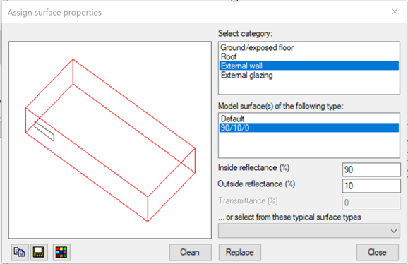 This allows you to assign surface properties of reflectance and transmittance to surfaces within the selected room or surface.